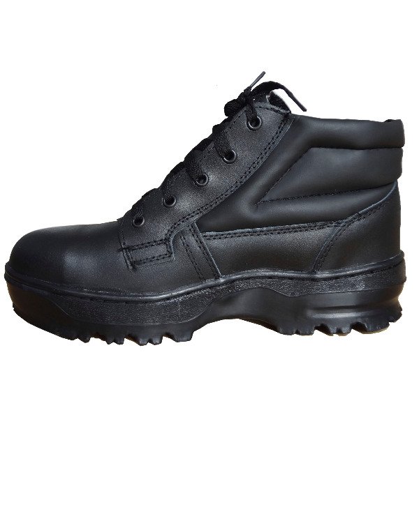 BOTIN DE TRABAJO CON PUNTERA DE ACERO, CUERO DESCARNE NEGRO, SUELA GOMA.